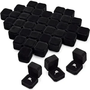 48 Pcs 2.13 x 2.01 x 1.54 in Velvet Ring Box Display Jewelry Storage Case for Christmas Wedding Engagement Gifts Black