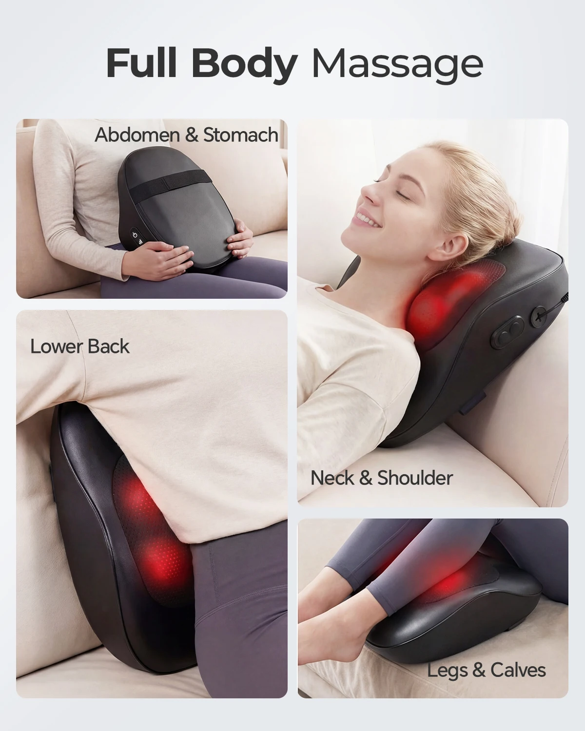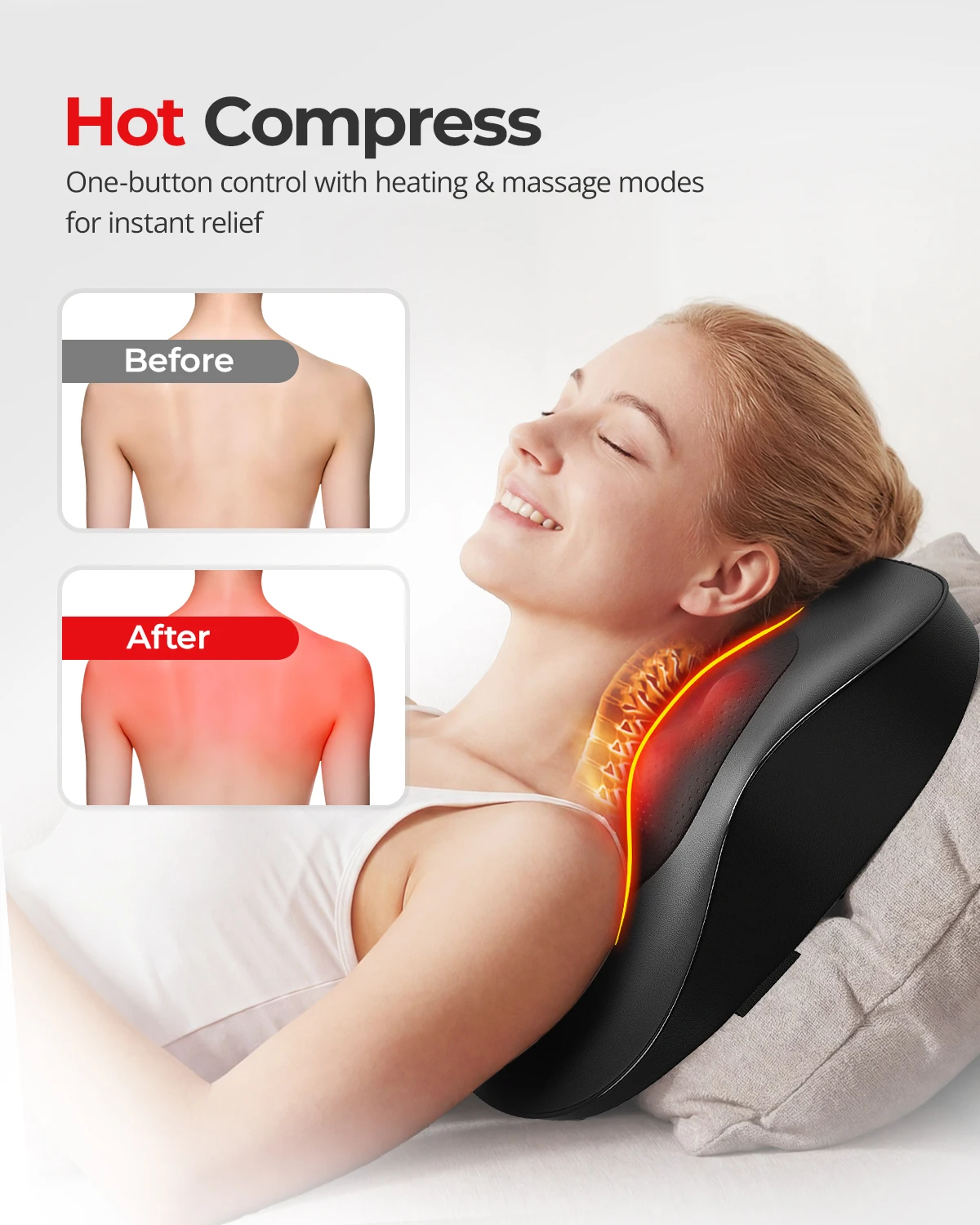 Electric Shiatsu Back Neck Massager with Heat,Ultra-Quiet Ergonomic 3D Kneading Massage Pillow for Full Body,Shoulder Leg Calf